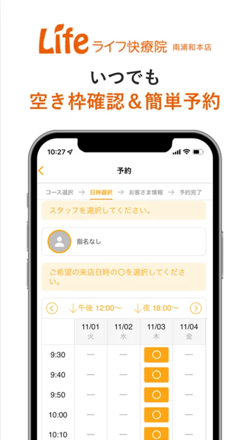 いつでもお手元のスマートフォンからご希望のお時間帯のチェック・ご予約が可能です。