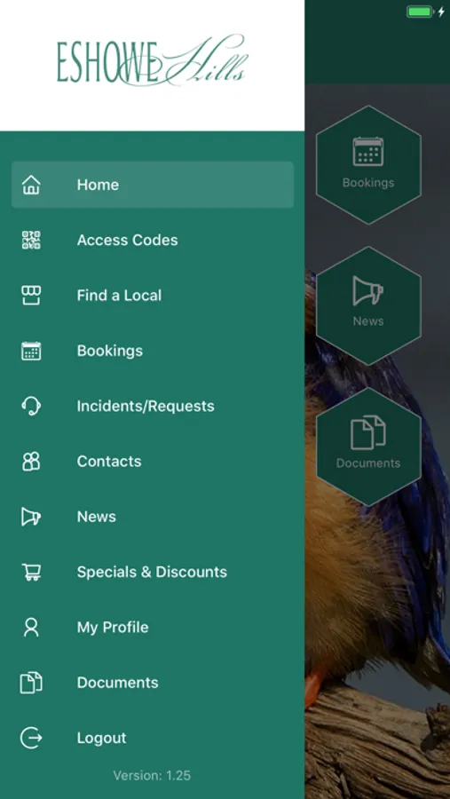 Eshowe Hills Resident's App for generation of access codes and access to estate news broadcasts.