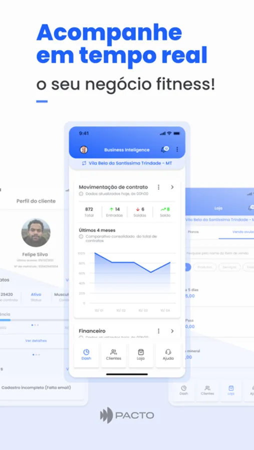 O aplicativo que todo gestor fitness precisa! O Pacto App é a solução inteligente para fortalecer a gestão financeira, de equipes e de processos da academia.