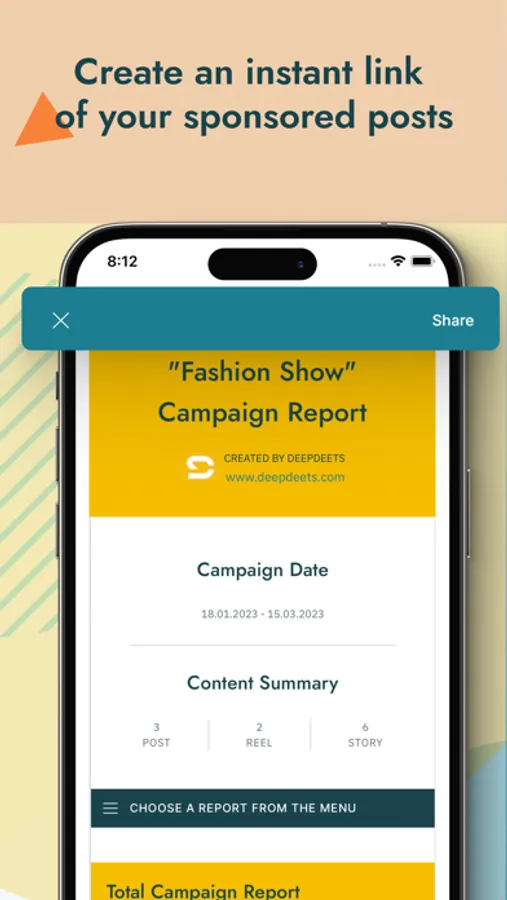 → Share your influential performance with brands by selecting posts and instantly generating shareable links