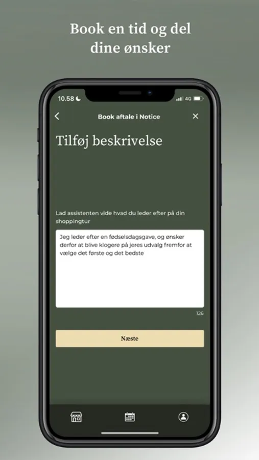 For at booke en tid gennem appen skal du vælge hvilken butik, du ønsker at besøge, hvilken butiksassistent du gerne vil betjenes af samt hvornår. Derudover skal du tilføje lidt information, om hvad du søger samt om hvilke udfordringer og behov butiksassistenten skal være opmærksom på. Hvis du bliver forhindret i at møde op, har du altid mulighed for at aflyse din tid.