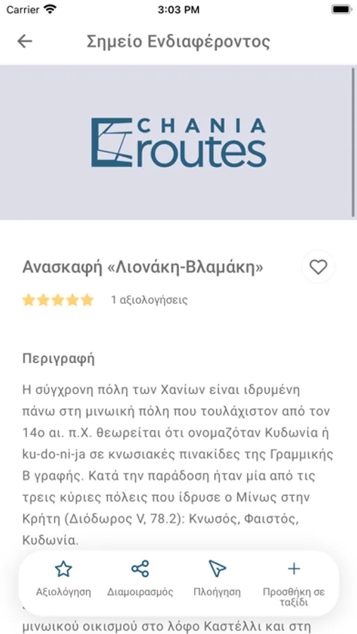 As part of the project, a website and a mobile application for mobile devices were developed, which include the cultural and tourist digital guide of Chania in five languages (Greek, English, French, German, Russian). The website and the application provide a unique tour experience to the points of interest of Chania and give the ability of remote access to valuable audio-visual material that creates opportunities for dialogue during the tour.