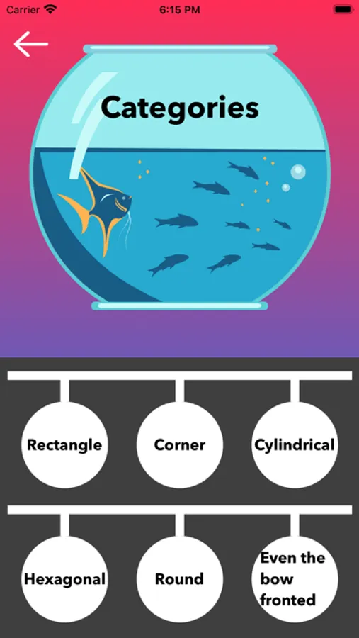 Once the app is started, user will get different categories of aquariums to select.