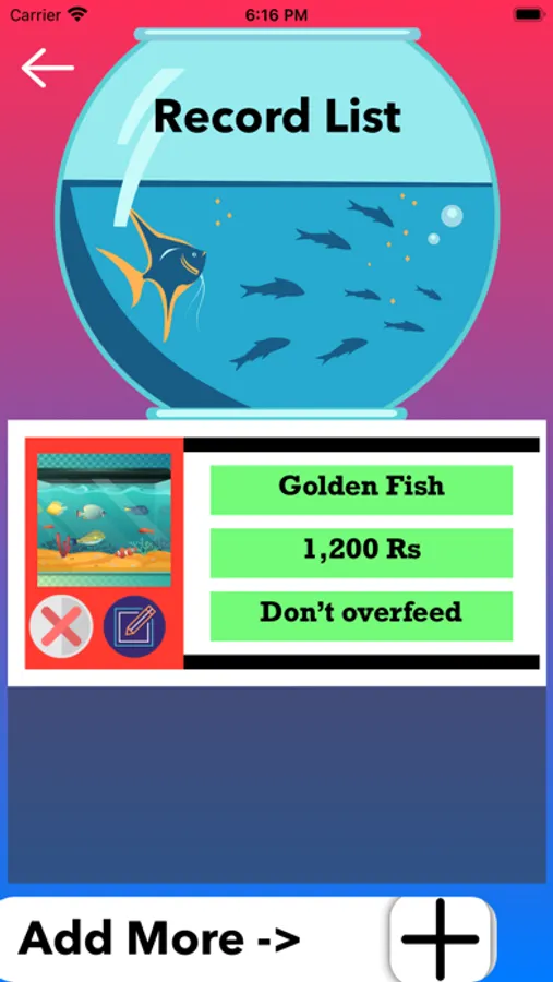 Once the details are added, user can view the list of all aquariums at one place.