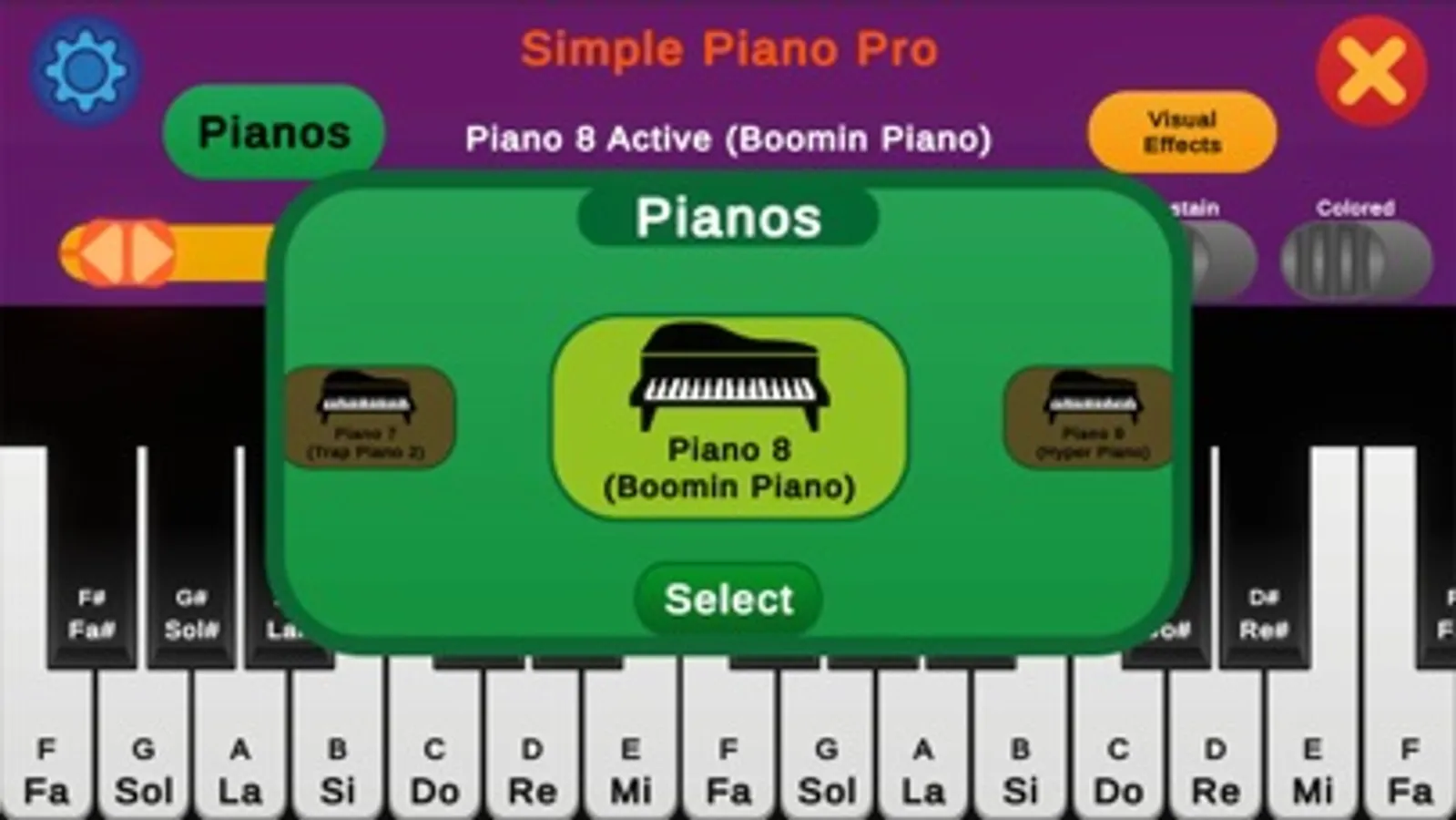 - Feel the piano playing with fun visual effects.