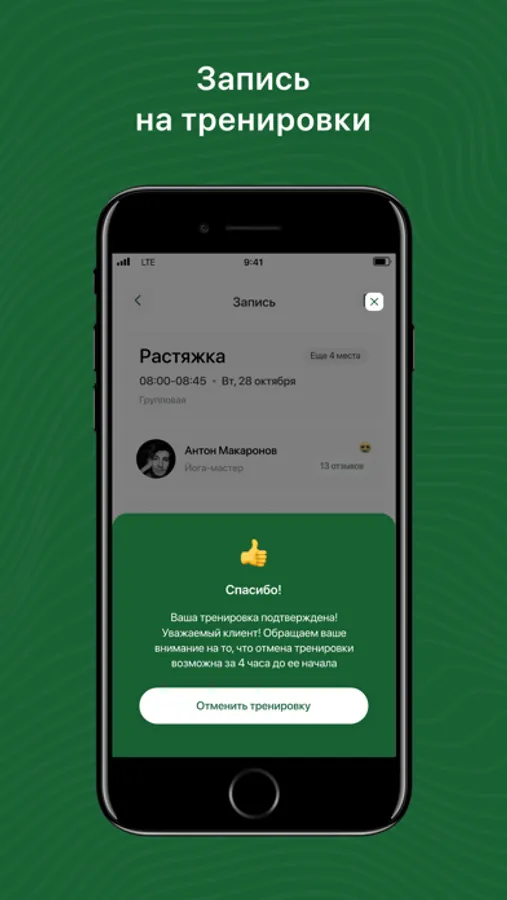 Получать PUSH-уведомления о предстоящей тренировке за 3 часа;