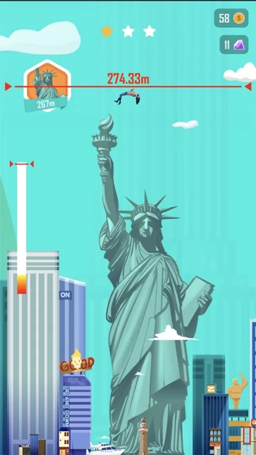 Tap the screen to choose whether to send the man into the sky or into the sea.