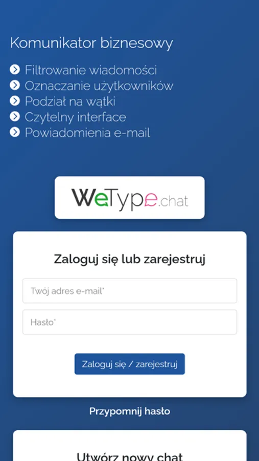 WeType chat to darmowy komunikator dostępny na iOS oraz www. Dzięki temu zawsze masz dostęp do swoich chatów.