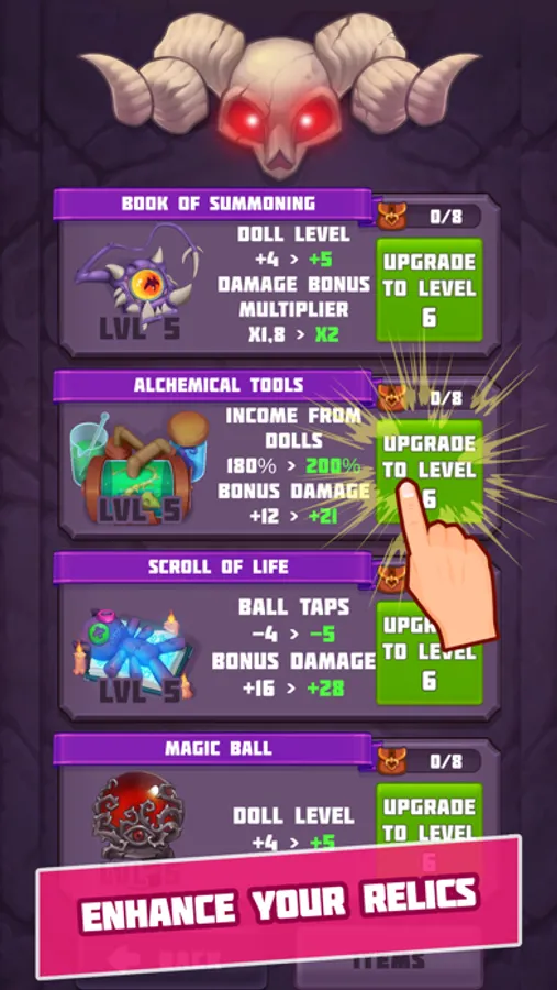 - Craft and upgrade artifacts