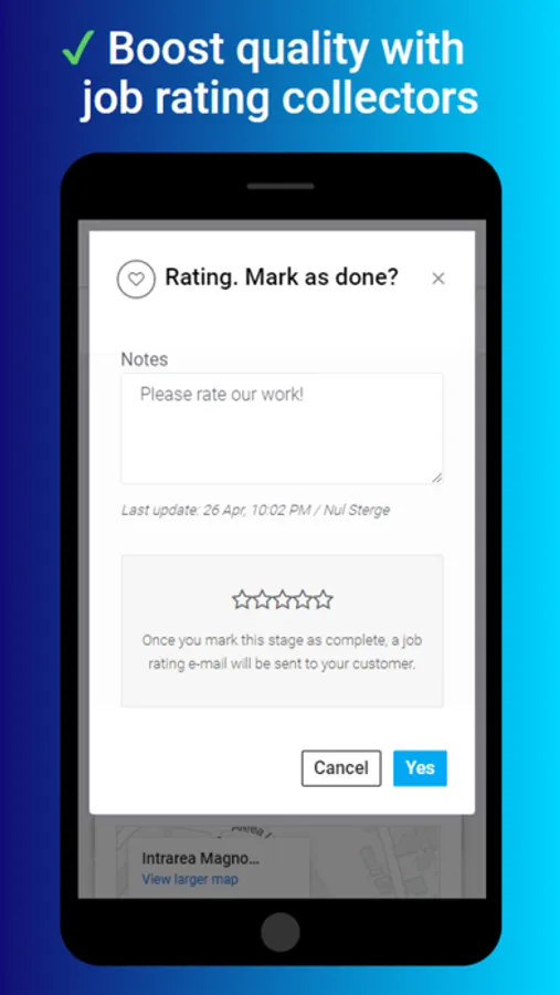 Dispatching system, Invoice & Estimate/Quote automation, Calendar Scheduling assistant, Estimate online approval process, Customer notification system, Google Maps integration.