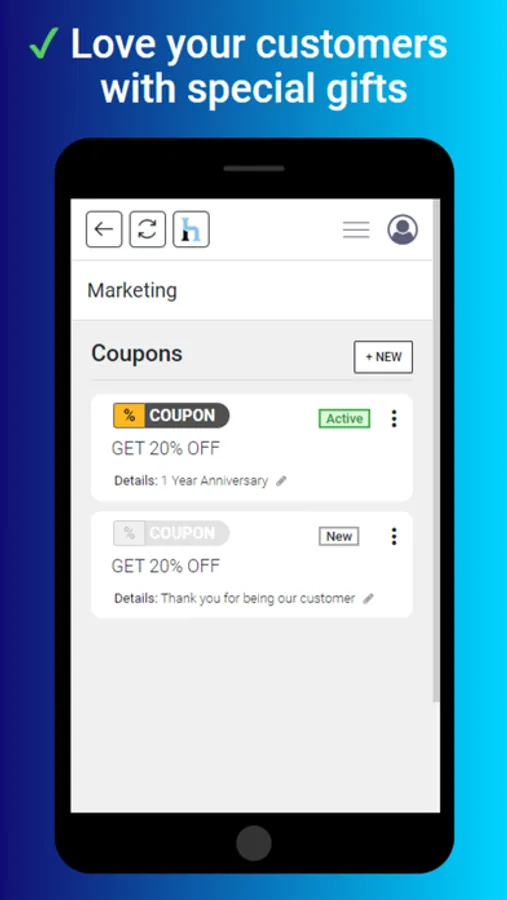 Coupon campaigns, Customer reward coupons, Online booking system, CRM - Customer Relationship Management system, Customer satisfaction rating, Custom recurring PLANs.
