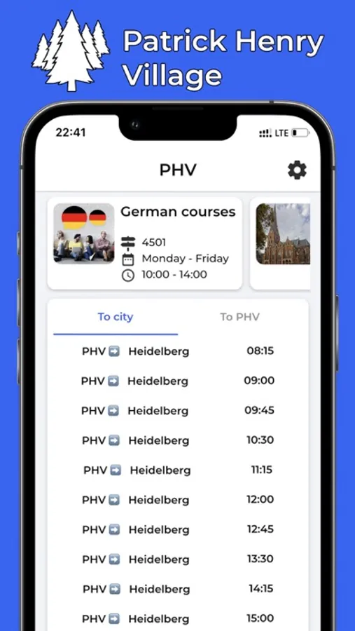 - See the bus schedule between the Patrick Henry Village camp and the city of Heidelberg;