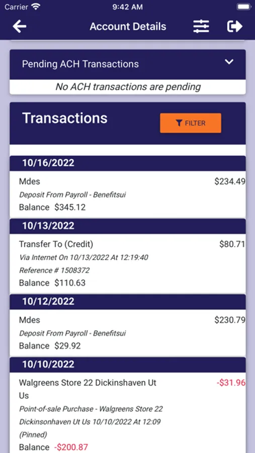 • View scheduled transactions, including pending deposits and upcoming transfers