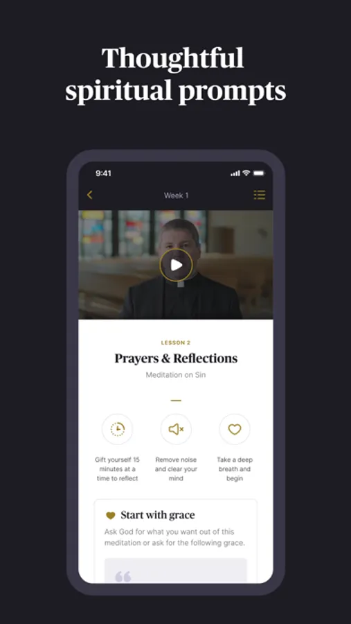 After watching a video, you can take what you’ve learned and apply it to your own life and relationship with God. Start with a grace, and then choose up to five prayers and reflections to contemplate. Take your time and continue to the next lesson when you’re ready.