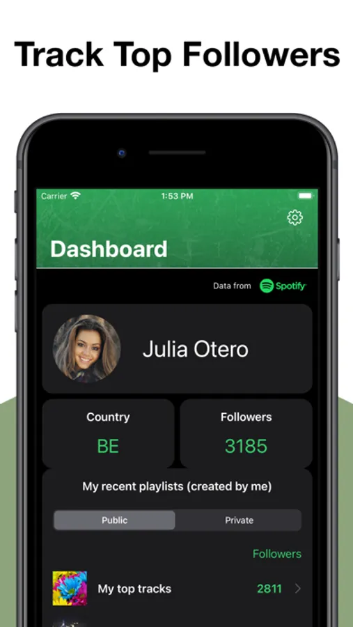 • TRACK TOP FOLLOWERS: see your influence with playlist popularity.