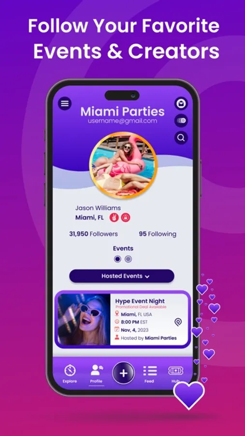 Get connected with followers & attendees. Create groups, and chats, send & receive direct messages, upload photos & share content. You can even follow your favorite creators, friends, or influencers and keep track of their events all from your profile.