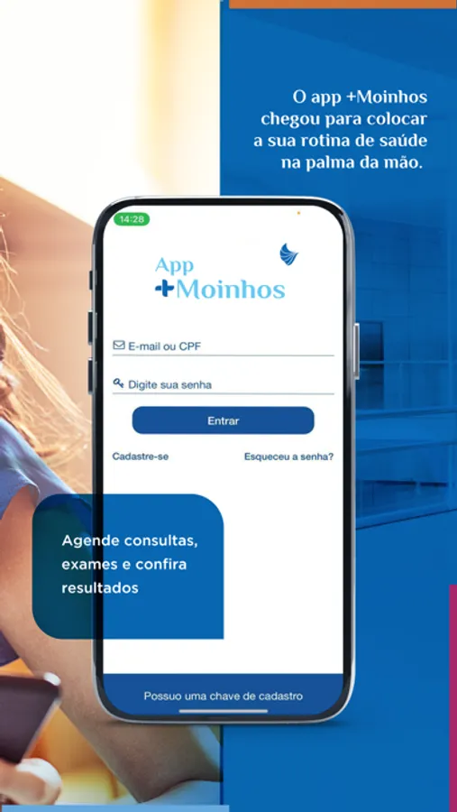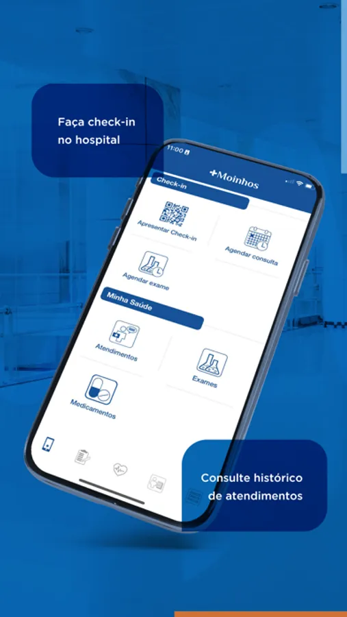 O aplicativo Mais Moinhos do Hospital Moinhos de Vento facilita o dia a dia de pacientes, dando acesso a autosserviços, como o agendamento de consultas e exames, realizar check-in por meio dos totens de nossas unidades, acompanhar o seu histórico de atendimentos e muito mais.