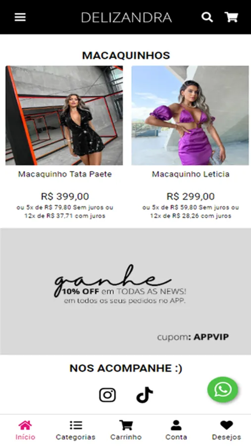 Com APP DELIZANDRA, voce ganha 10% OFF em todas as suas compras em NEWS, use o cupom: HELLO.