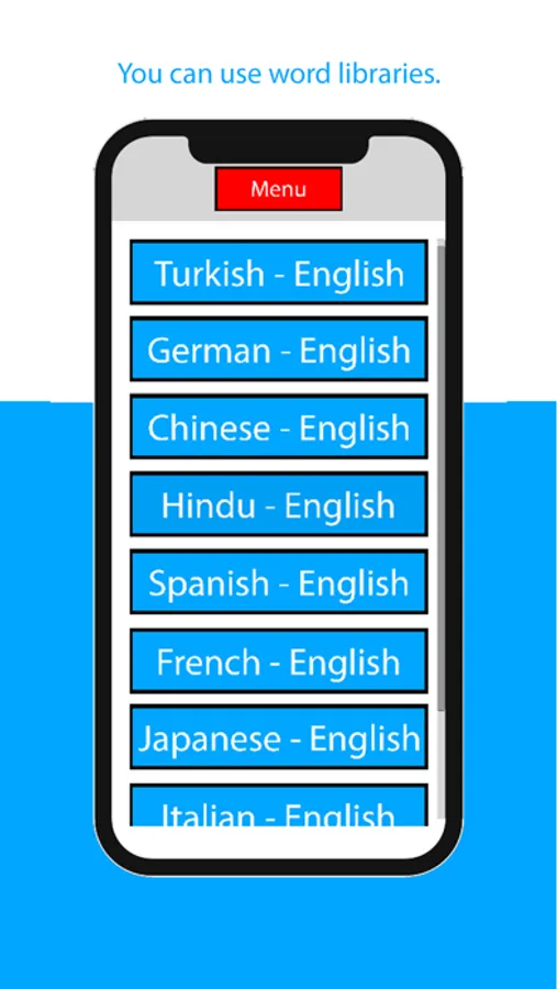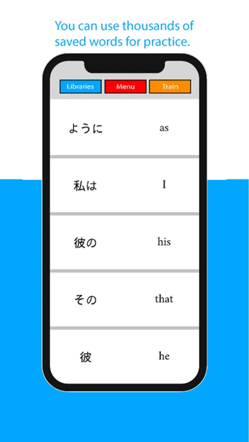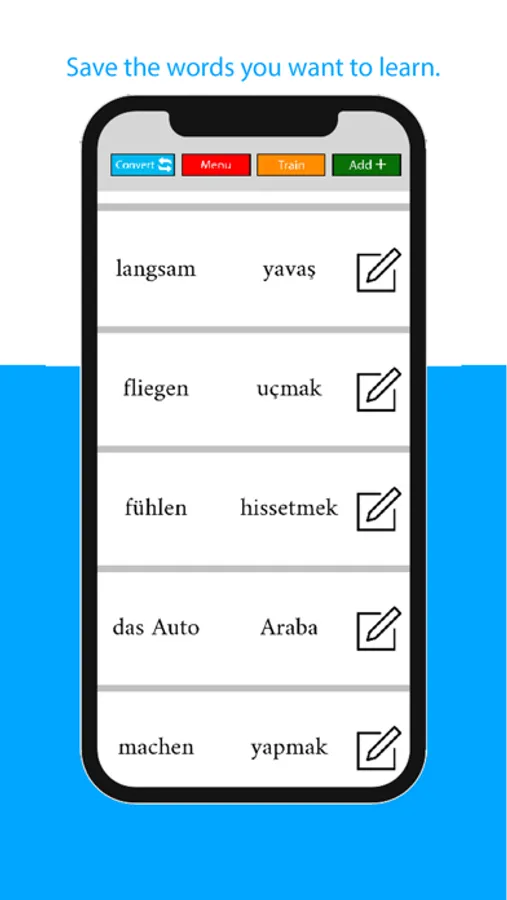 Save the words you want to learn and practice with the words you have saved. Improve your vocabulary and directly add new words.