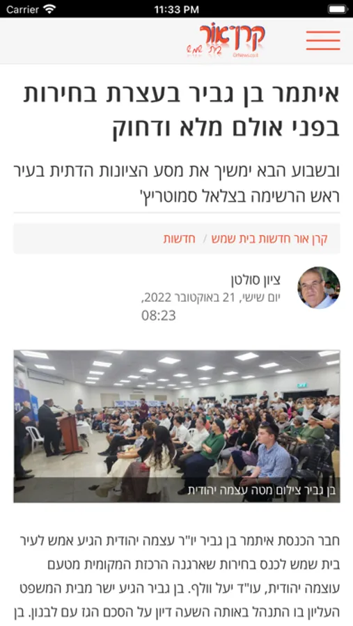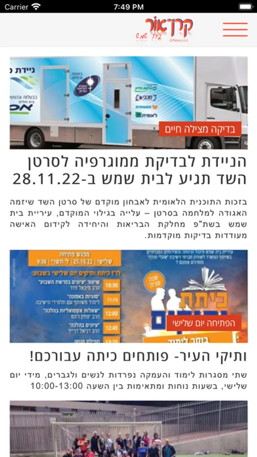 קרן אור, המקומון המוביל בבית שמש מאז ומתמיד - עכשיו גם באפליקציה.