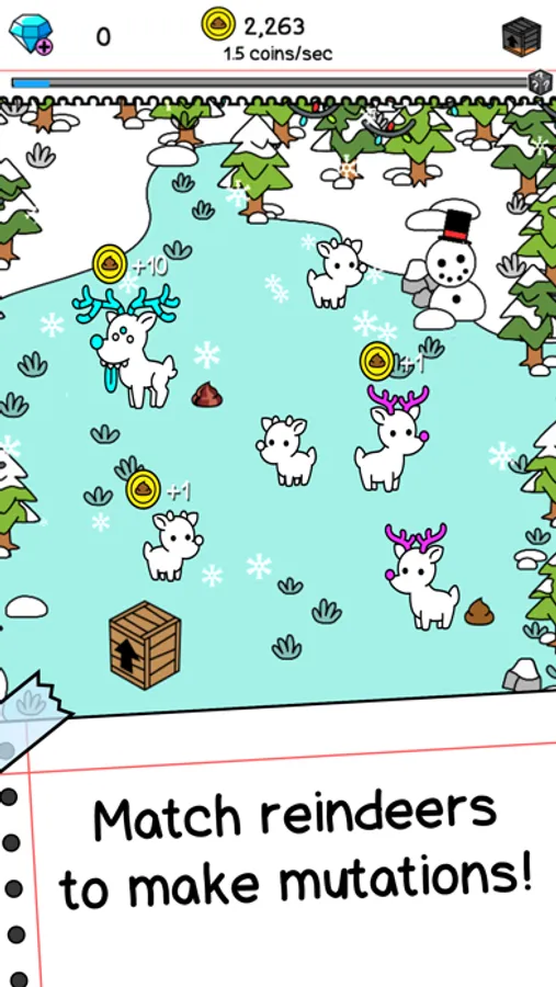 - Use reindeer eggs to earn coins, buy new creatures and make even more money