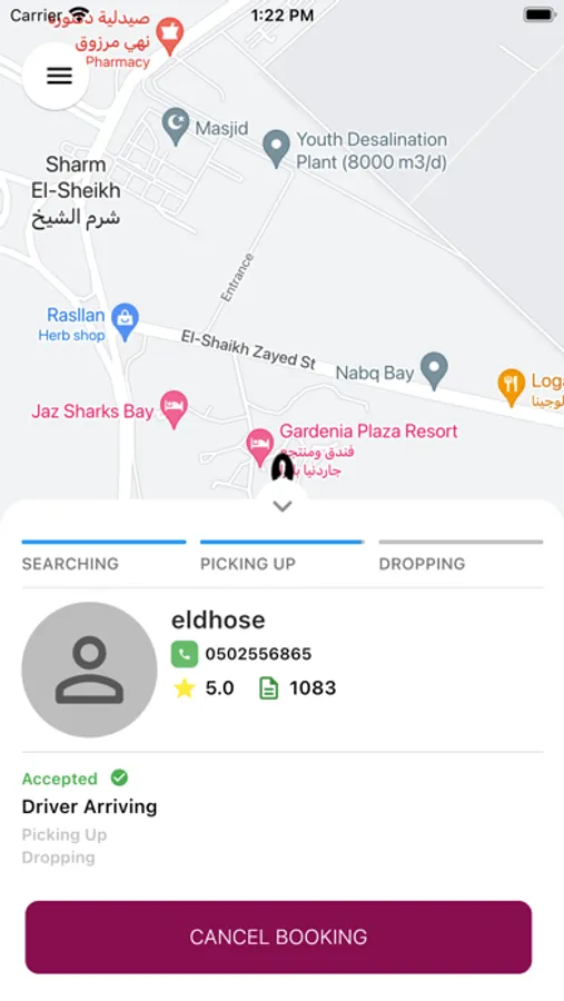 Sharm Taxi also provides info about the driver with whom you will ride, including first name, vehicle type, and license plate number. This info helps the two of you connect at your pickup location.