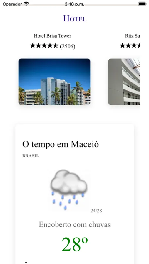 Também contamos com as opções de Restaurantes e Hotéis da cidade escolhida. O funcionamento é igual ao do Restaurante, ao fazer clique temos acesso as resenhas, fotos, comentários e mais detalhes fora da App.