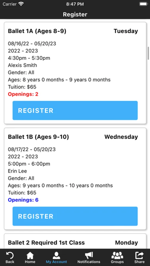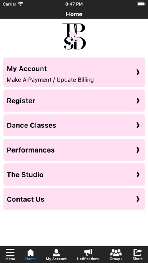 The Turning Pointe app allows you to manage your account with ease, register for classes, and submit payments. You'll also receive important notifications about class changes, closings, registration openings, special announcements, and upcoming events.