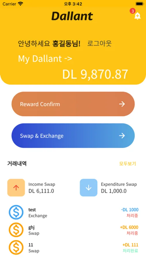 자사 교육 서비스와 쇼핑몰을 이용하는 회원들에게 리워드(Dallant)를 제공하고