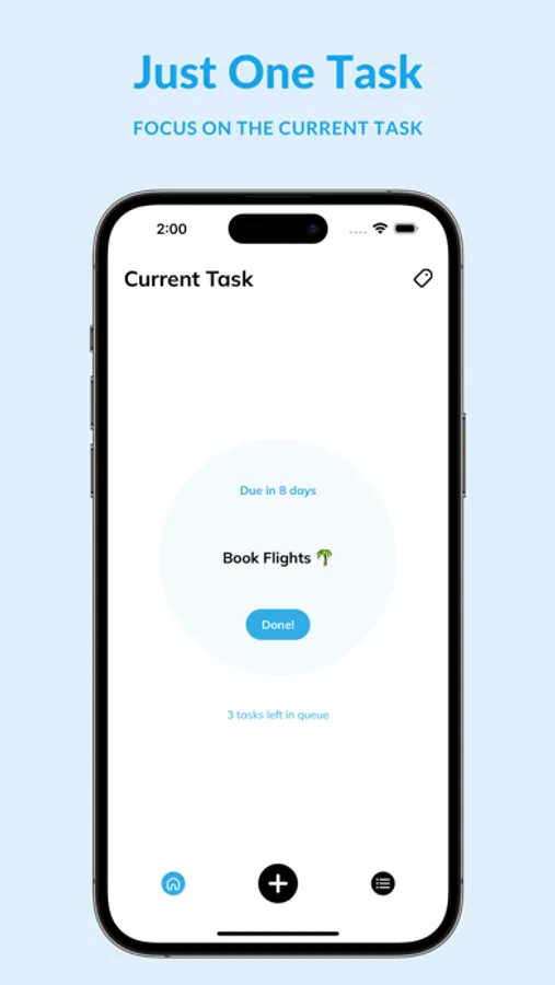 Overwhelmed by your to-do list? Just One Task is a task management app that shows only one task at a time.