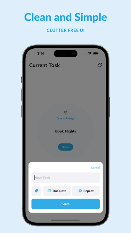 Never forget when your tasks should be done. Add due dates to your tasks to keep you organized with your deadlines.