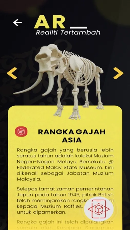 • Scan dedicated marker at Muzium Perak to experience augmented reality collections such as;