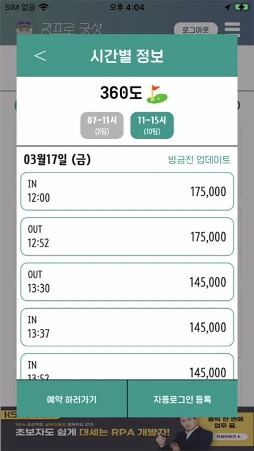 원하시는 날짜의 골프장에 잔여티가 없다면 알림을 신청해 보세요! 잔여티가 생기면 문자로 알려줍니다.