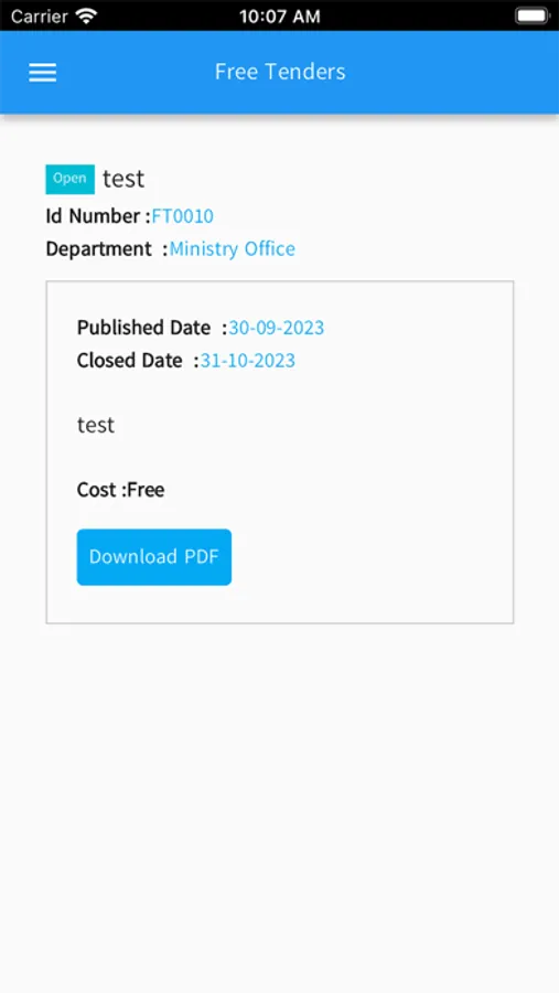 Application to Download Tenders that are uploaded by MOEP-E-Tender System