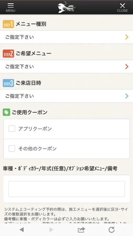 希望のメニュー・日時を指定して送信するだけで予約を依頼できます。
