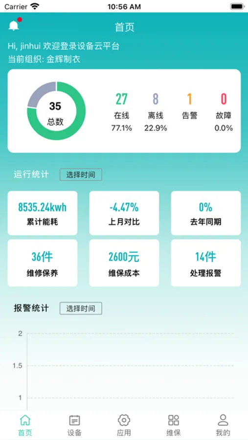 “睿家”工业设备云平台基于开放工业互联网设备接入平台,帮助工业领域各行各业的设备快速接入互联网,依靠边缘计算实现端设备的数据采集处理,依托人工智能实现故障预判,依托海量数据实现实时分析,搭建一站式IoT服务平台,实现设备的网络化和智能化。平台具备最新物联接入技术、海量数据处理能力、完善业务处理流程、丰富数据分析工具,支持多样信息处理终端。平台围绕安全、绿色、高效、连续的设备使用场景,提供设备状态监测、产线数据监测、设备台账管理、设备运维管理、设备预测性维护、能耗管理、运营报表、可视化分析大屏、移动端APP等功能。