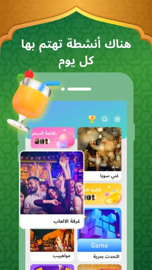 هنا يمكنك أن تجد الناس في نفس المزاج في غرفة الحفلات، واستكشاف العالم معا ، ومساعدة بعضهم البعض على التمسك بأفكارهم بشكل أفضل .
