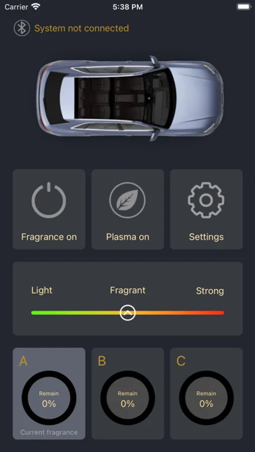 七彩等离子香氛系统是一款用于控制汽车终端设备——“七彩等离子香氛系统”的应用。可以搜索局域网内设备,进行设备蓝牙连接,从而进行设备开关控制、工作模式调节、显示设置、香型切换、浓度调节等,实现对七彩等离子香氛系统设备的遥控功能。