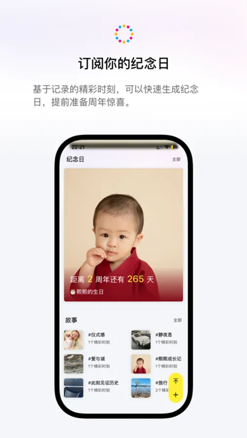 基于记录的精彩时刻,可以快速生成纪念日,提前准备周年惊喜。