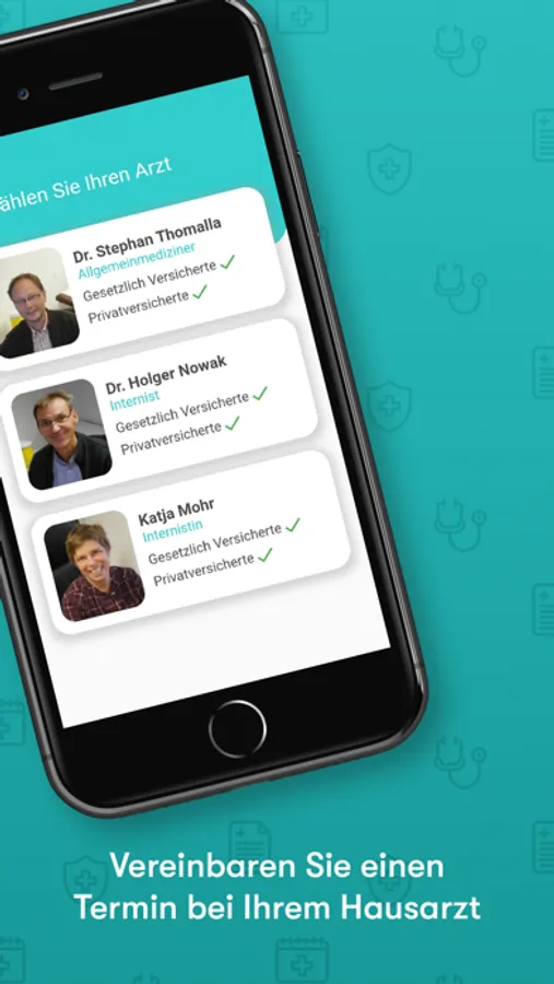 Sie haben die Möglichkeit, Sprechstundentermine und reguläre Termine durch die App anzufragen. Für reguläre Termine, wählen Sie zuerst Ihren Hausarzt aus. Um einen Termin anzufragen, werden Sie nach einer kurzen Beschreibung Ihres Anliegens gefragt, sodass die Praxis individuell auf Sie eingehen, und einen passenden Termin vereinbaren kann. Sie werden von der Praxis angerufen, um Nachfragen zu klären und einen festen Termin zu vereinbaren. Sobald die Anfrage abgeschickt worden ist, können Sie den Status Ihrer Anfrage unter „Meine Anfragen“ einsehen.
