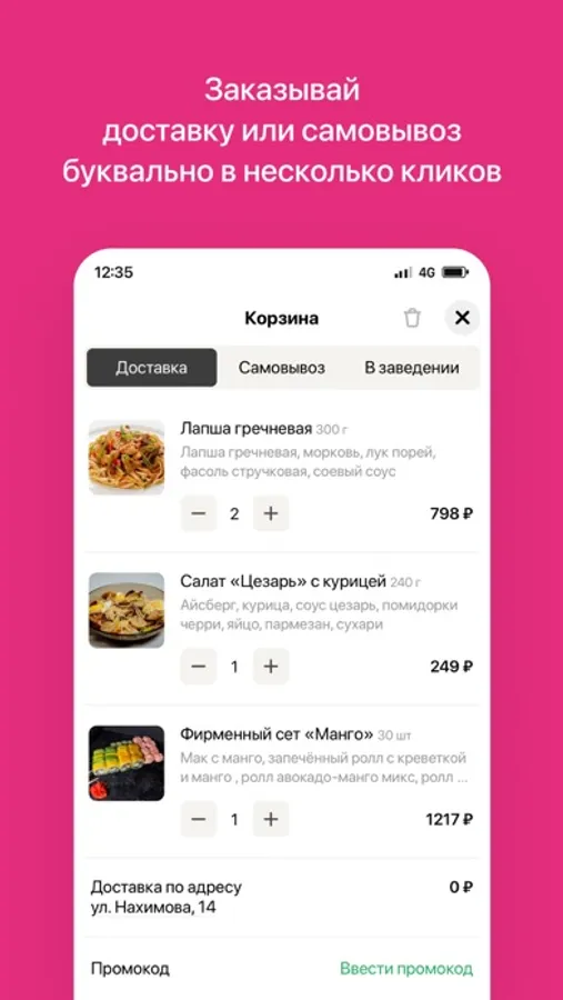 — Быстрый заказ с мгновенным подтверждением через приложение.