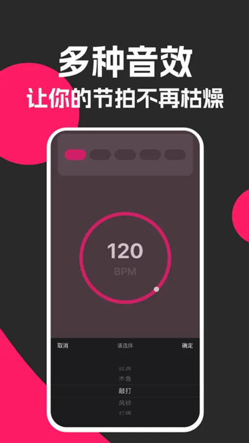 节拍器中可以随意设定节拍、并且设置不同的节拍音效.让你的节拍不再枯燥.