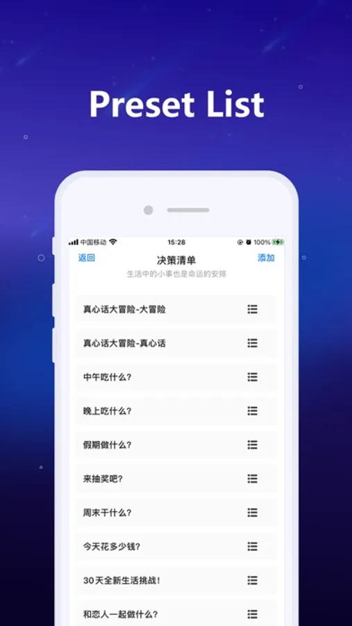 A large list of decisions has been prepared for you, which is convenient and practical!