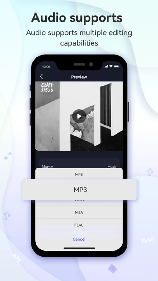 ● Support mp3, wav, ogg, m4a, acc, flac and other audio formats.