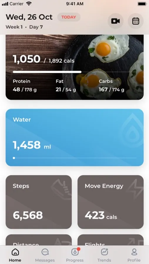 The app integrates with Apple Health to show your daily activity - distance, steps, active energy, and flights to help you better achieve your goals.