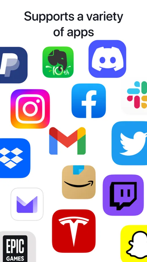Supports the most popular services including Google, Facebook, Discord, Twitch, Bitwarden, Instagram, Roblox and thousands of other providers.