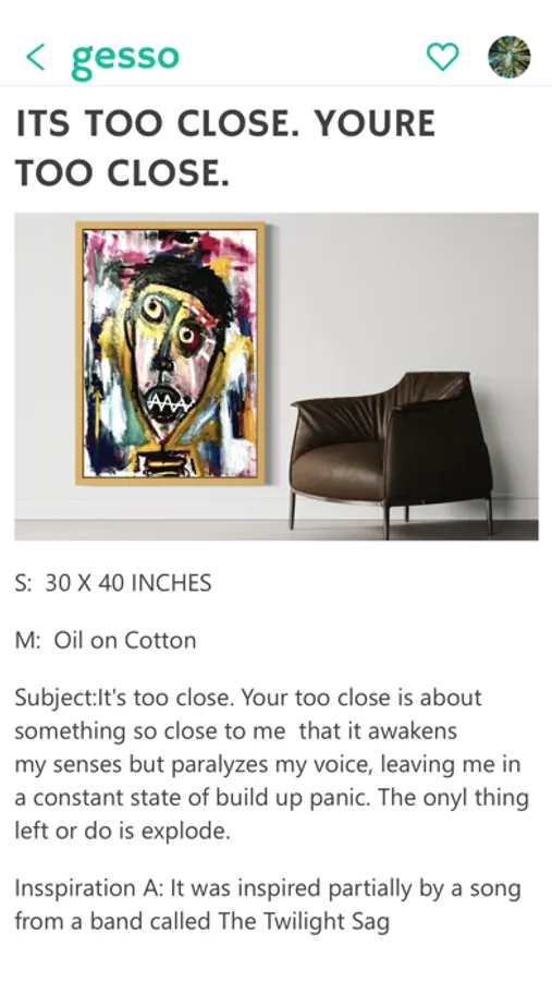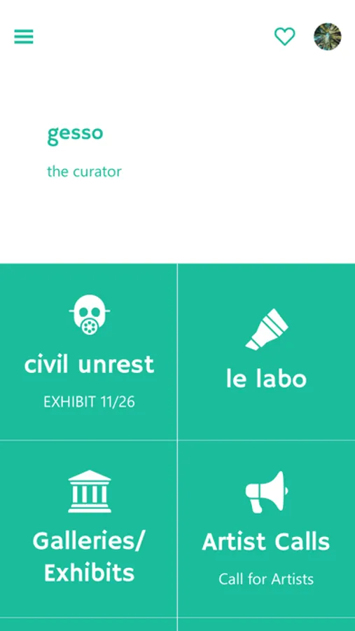Gesso offers virtual curation, specific to your need your needs and desires. Gesso also offers free labs called Le Labo where members of the app meet monthly at a private, upscale location for a 4-hour creative lab. Galleries can post their calls for artists, and current exhibits, and get listed in our gallery index. Artists can answer those calls, post information about their exhibition, and buy discount art supplies from companies like Montana Cans, POSCA pens. Artists can also build their own communities as well. Finally, you can list your art in our virtual gallery. All of this plus so much more is absolutely free.