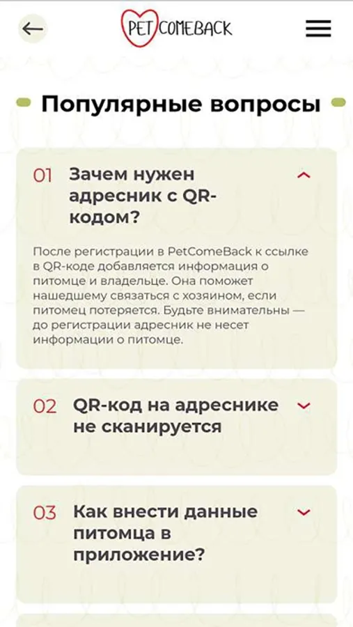 3. Если питомец потерялся — у вас все шансы найти его быстро. Отсканировав QR-код на его адреснике, любой человек сразу увидит профиль питомца и ваши контакты. Один звонок — и любимчик возвращается домой!