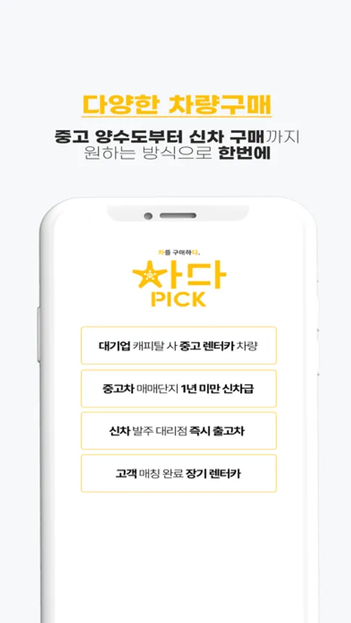※ 차다 PICK은 일반 소비자가 아닌 렌터카 법인들에게 제공되는 앱입니다.