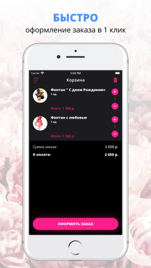 удобная корзина и быстрое оформление заказа,
